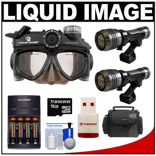 Best Buy Liquid Image Scuba Series Mid-Size Underwater High Definition Digital Camera Mask HD with (2) LED Torches + 16GB Card + (4) AAA Batteries & Charger + Case + Cleaning Kit