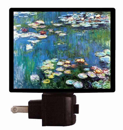 Old Masters Night, This night light is by French impressionist Claude Monet. This 1906 Waterlilies picture is one of his most popular paintings in the series of almost 250 paintings. This beautiful night light is a very nice addition to nearly any room! This light makes a very unique gift and perfect as a stocking stuffer, office gift, or grab bag gift. Photographic image is printed in the USA using high quality inks. **PLEASE NOTE** Unlike cheaper night lights, the light bulb on these decorative lights are fully enclosed! No more seeing an exposed bulb when looking at the night light from the side. You'll love the richness of the light as it provides you with both safety and improved visual attractiveness. All night lights sold on Amazon are available with either incandescent or LED bulbs. There are separate listings for each bulb type. This is an extremely well built and solid unit!