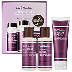 Carol's Daughter Chocol, What it is: A collection that helps smooth frizz by deeply nourishing the hair as it straightens. What it does: This trio of products works to protect your hair from overheating caused by blow-dryers, pressing combs, and flatirons. Each formula smooths and rebuilds your hair's structure, naturally, giving it a silky sleek finish. This set contains:- 2 oz Chocol t Smoothing Sulfate-Free Shampoo- 2 oz Chocol t Smoothing Conditioner- 1.5 oz Chocol t Smoothing Blow Dry Cream What it is